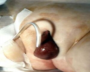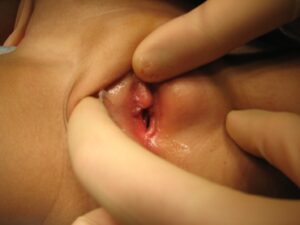 Hình 6. Sa niệu đạo toàn bộ chu vi ở một bé gái.